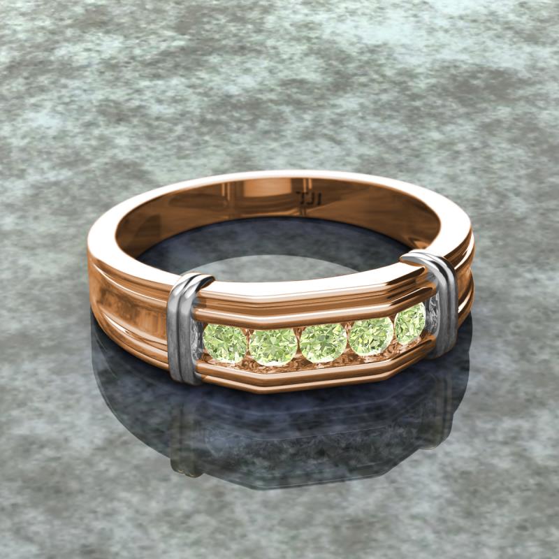0.58 ctw Round 5 Peridot (3 mm) using Channel setting Men Wedding Band in 18K Rose Gold More Details ...