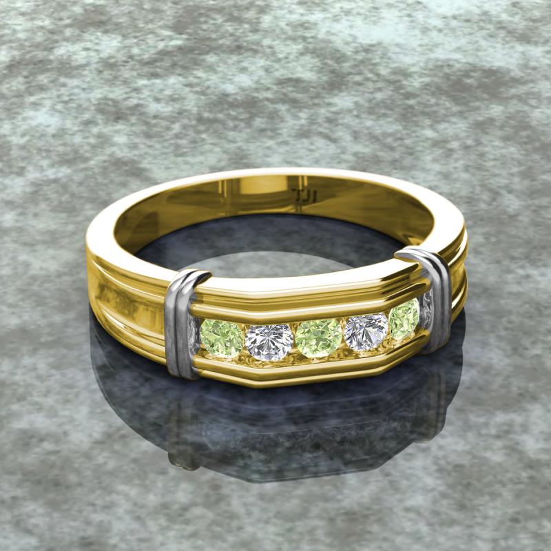 0.55 ctw Round 5 Peridot and Natural Diamond (3 mm) using Channel setting Men Wedding Band in 18K Yellow Gold More Details ...
