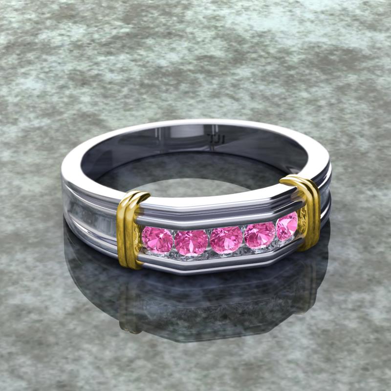 0.53 ctw Round 5 Pink Sapphire (3 mm) using Channel setting Men Wedding Band in 18K White Gold More Details ...
