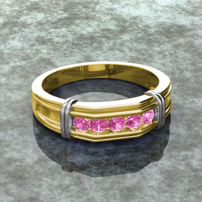 0.53 ctw Round 5 Pink Sapphire (3 mm) using Channel setting Men Wedding Band in 10K Yellow Gold More Details ...