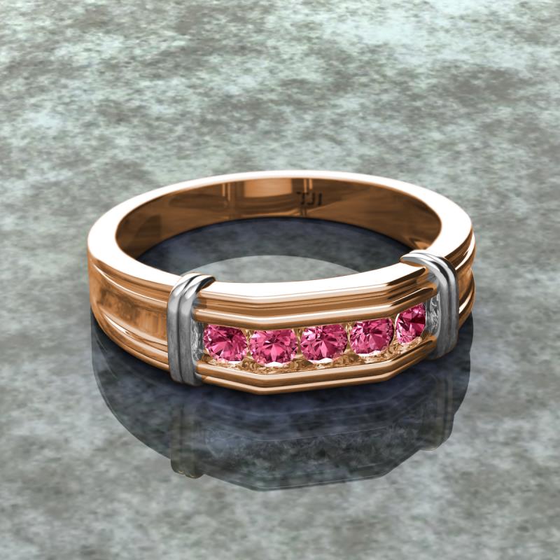 0.40 ctw Round 5 Pink Tourmaline (3 mm) using Channel setting Men Wedding Band in 18K Rose Gold More Details ...