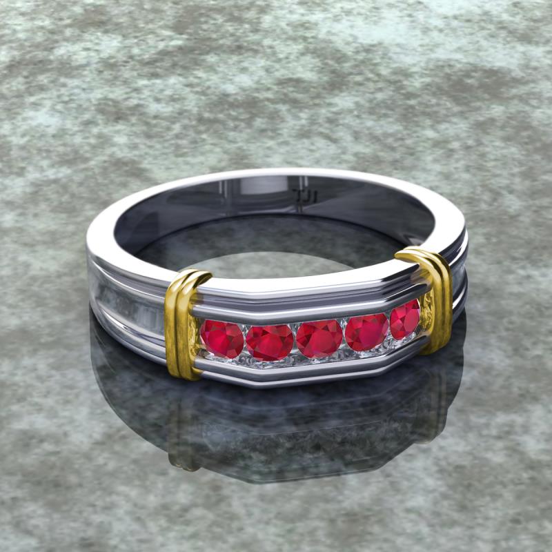 0.50 ctw Round 5 Ruby (3 mm) using Channel setting Men Wedding Band in 10K White Gold More Details ...