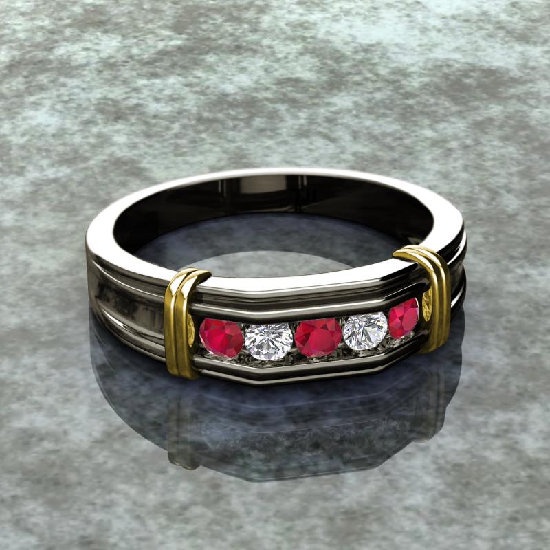0.50 ctw Round 5 Ruby and Natural Diamond (3 mm) using Channel setting Men Wedding Band in 18K Gold More Details ...