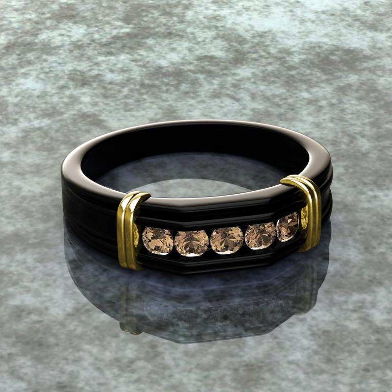 0.50 ctw Round 5 Smoky Quartz (3 mm) using Channel setting Men Wedding Band in 14K Black Gold More Details ...