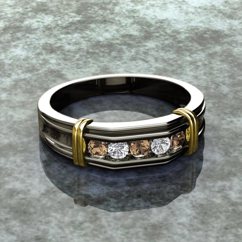 0.50 ctw Round 5 Smoky Quartz and Natural Diamond (3 mm) using Channel setting Men Wedding Band in 18K Gold More Details ...