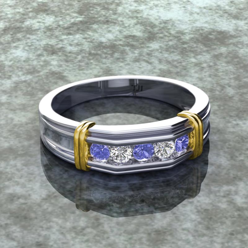 0.47 ctw Round 5 Tanzanite and Natural Diamond (3 mm) using Channel setting Men Wedding Band in 14K White Gold More Details ...