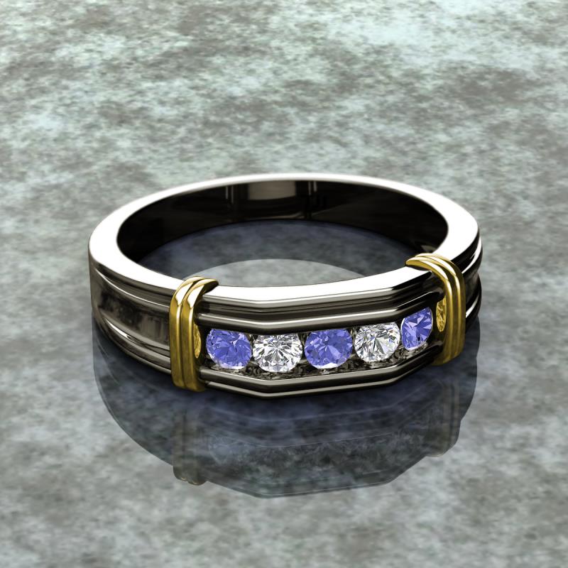 0.47 ctw Round 5 Tanzanite and Natural Diamond (3 mm) using Channel setting Men Wedding Band in 14K Gold More Details ...