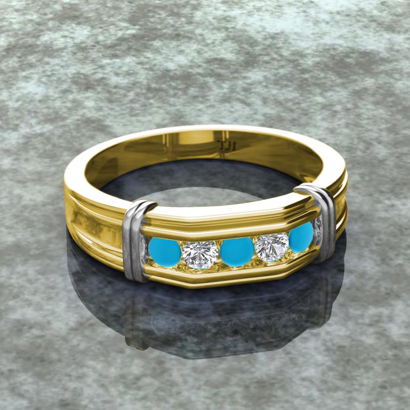0.41 ctw Round 5 Turquoise and Natural Diamond (3 mm) using Channel setting Men Wedding Band in 18K Yellow Gold More Details ...