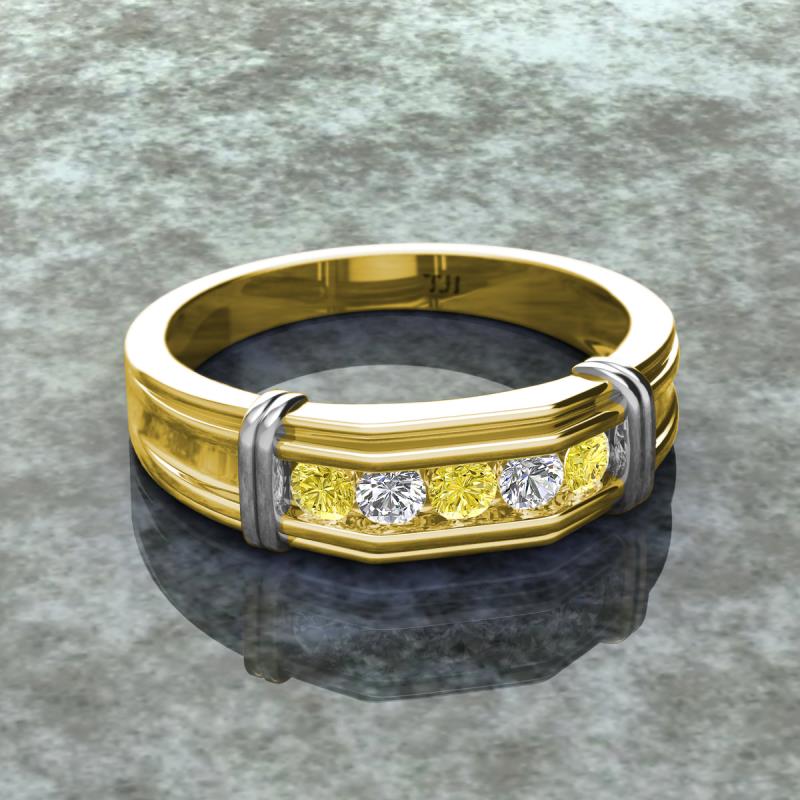 0.50 ctw Round 5 Yellow Diamond and Natural Diamond (3 mm) using Channel setting Men Wedding Band in 18K Yellow Gold More Details ...