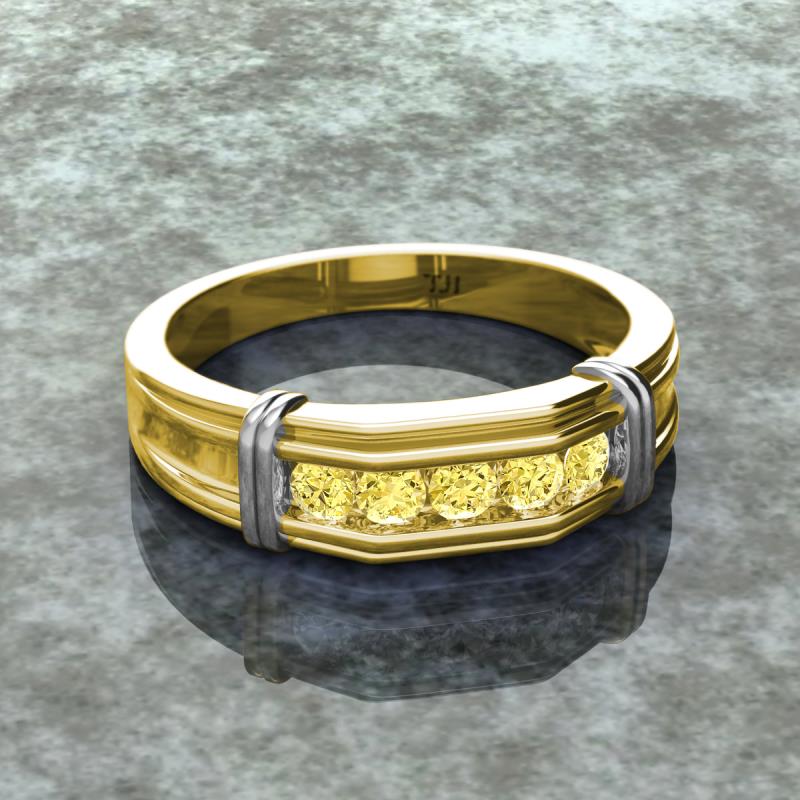 0.53 ctw Round 5 Yellow Sapphire (3 mm) using Channel setting Men Wedding Band in 18K Yellow Gold More Details ...