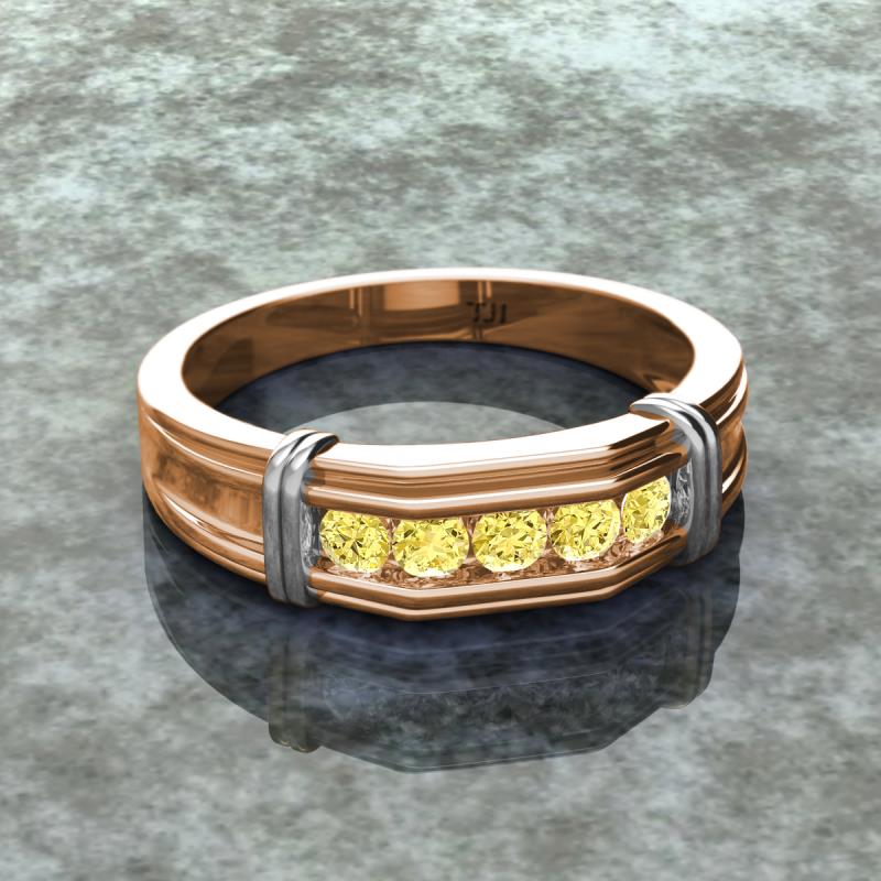 0.53 ctw Round 5 Yellow Sapphire (3 mm) using Channel setting Men Wedding Band in 18K Rose Gold More Details ...
