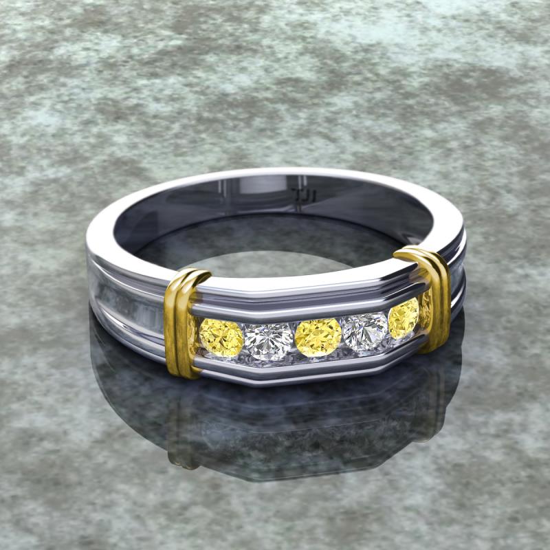 0.56 ctw Round 5 Yellow Sapphire and Natural Diamond (3 mm) using Channel setting Men Wedding Band in 14K White Gold More Details ...