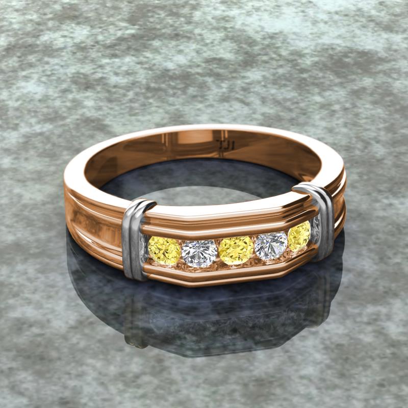 0.56 ctw Round 5 Yellow Sapphire and Natural Diamond (3 mm) using Channel setting Men Wedding Band in 14K Rose Gold More Details ...