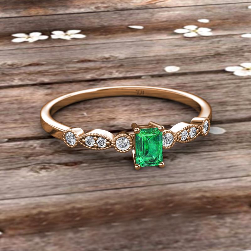 Emerald Cut (6x4 mm) Emerald and Round Diamond 1/2 ctw Marquise and Dot Womens Engagement Ring 14K Rose Gold More Details ...