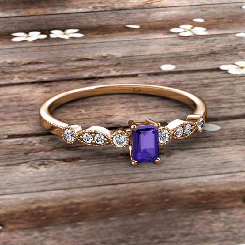 Emerald Cut (6x4 mm) Iolite and Round Diamond 5/8 ctw Marquise and Dot Womens Engagement Ring 18K Rose Gold More Details ...