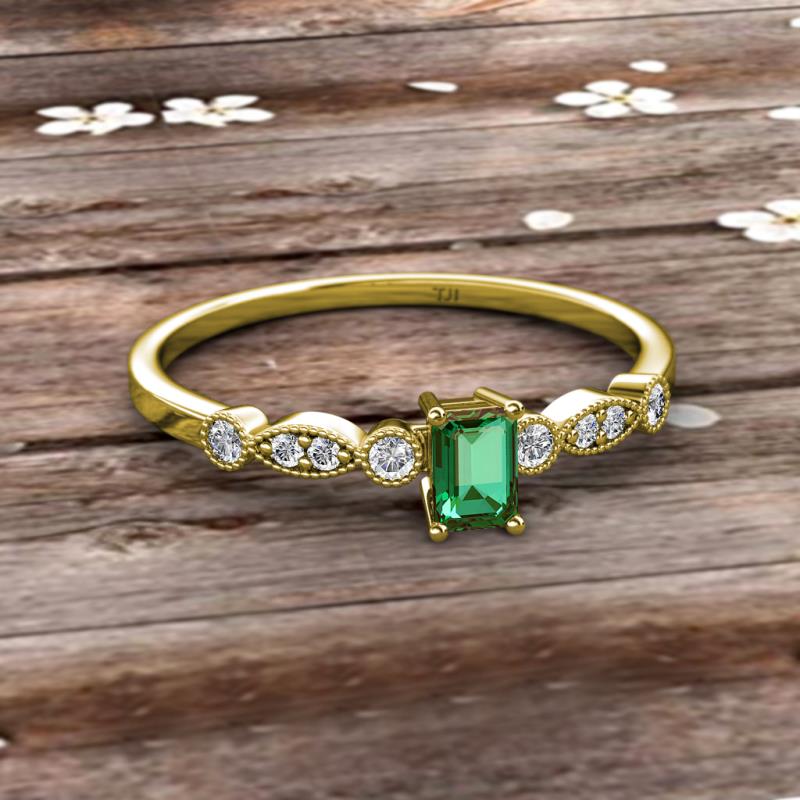 Emerald Cut (6x4 mm) Lab Created Alexandrite and Round Diamond 3/4 ctw Marquise and Dot Womens Engagement Ring 10K Yellow Gold More Details ...