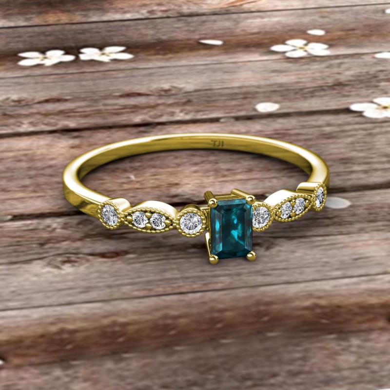 Emerald Cut (6x4 mm) London Blue Topaz and Round Diamond 3/4 ctw Marquise and Dot Womens Engagement Ring 18K Yellow Gold More Details ...