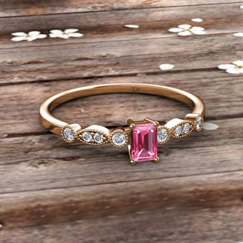 Emerald Cut (6x4 mm) Pink Tourmaline and Round Diamond 3/4 ctw Marquise and Dot Womens Engagement Ring 10K Rose Gold More Details ...