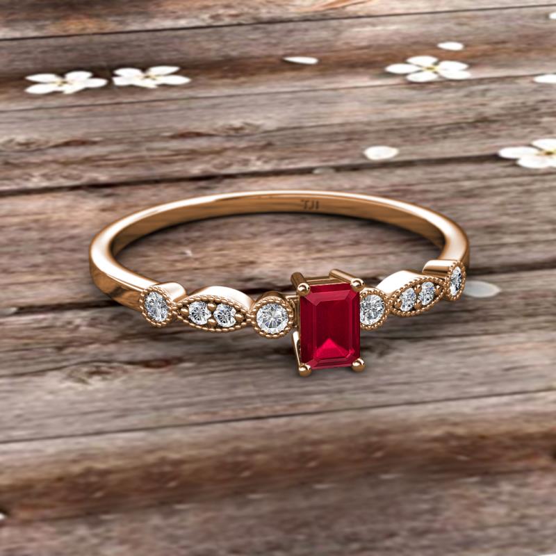 Emerald Cut (6x4 mm) Ruby and Round Diamond 1/2 ctw Marquise and Dot Womens Engagement Ring 18K Rose Gold More Details ...