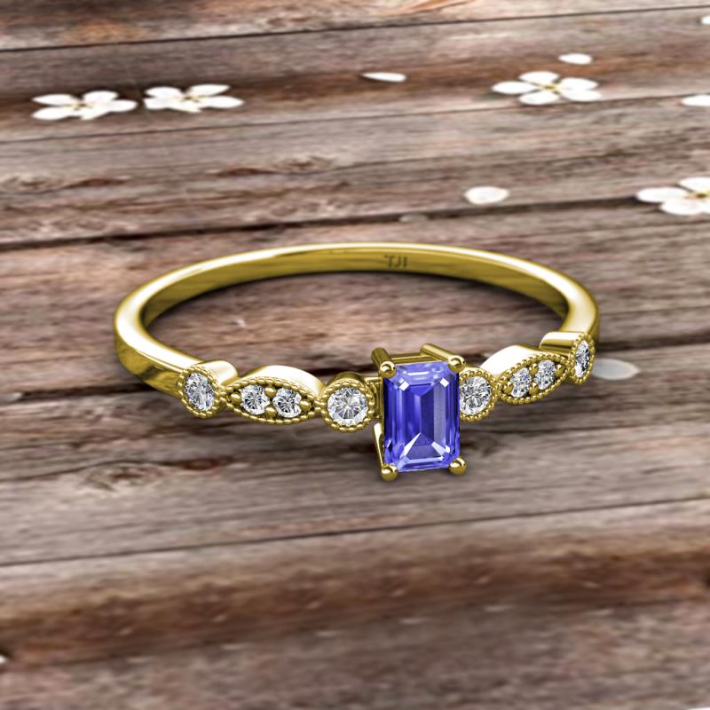 Emerald Cut (6x4 mm) Tanzanite and Round Diamond 3/4 ctw Marquise and Dot Womens Engagement Ring 10K Yellow Gold More Details ...