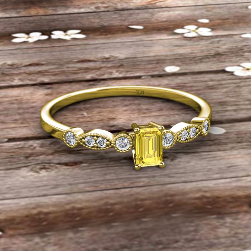 Emerald Cut (6x4 mm) Yellow Sapphire and Round Diamond 1/2 ctw Marquise and Dot Womens Engagement Ring 18K Yellow Gold More Details ...