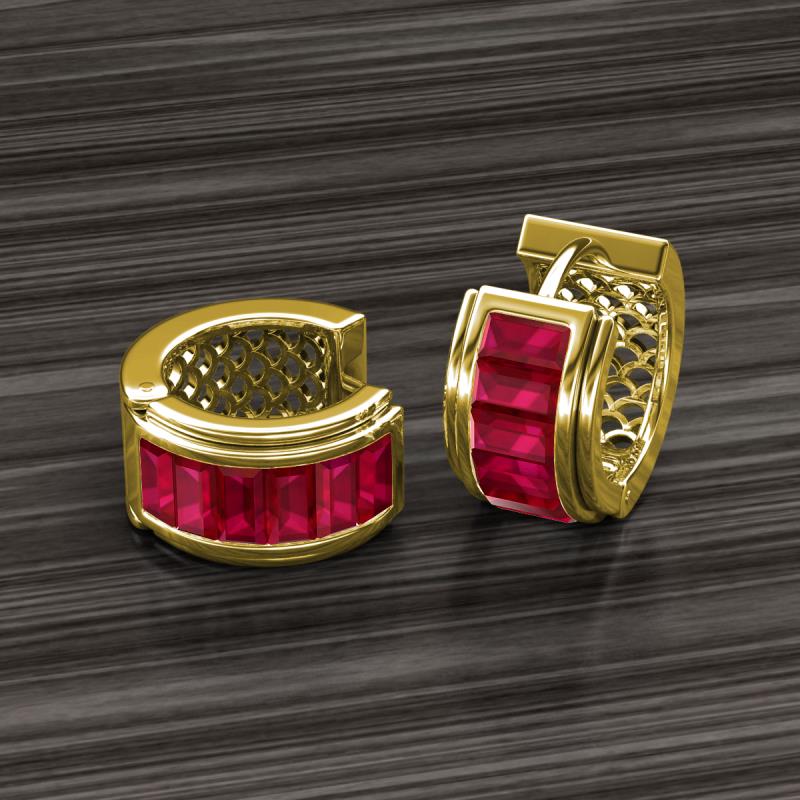 Baguette Shape (3.8x2.0 mm) Ruby 1.57 ctw Womens Channel Set Hoop Earrings 14K Yellow Gold More Details ...