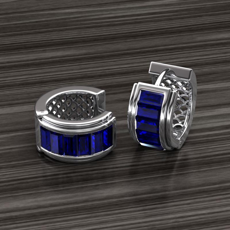 1.56 ctw Blue Sapphire Baguette Shape (3.75 x2.00 mm) Womens Channel Set Hoop Earrings 18K White Gold More Details ...