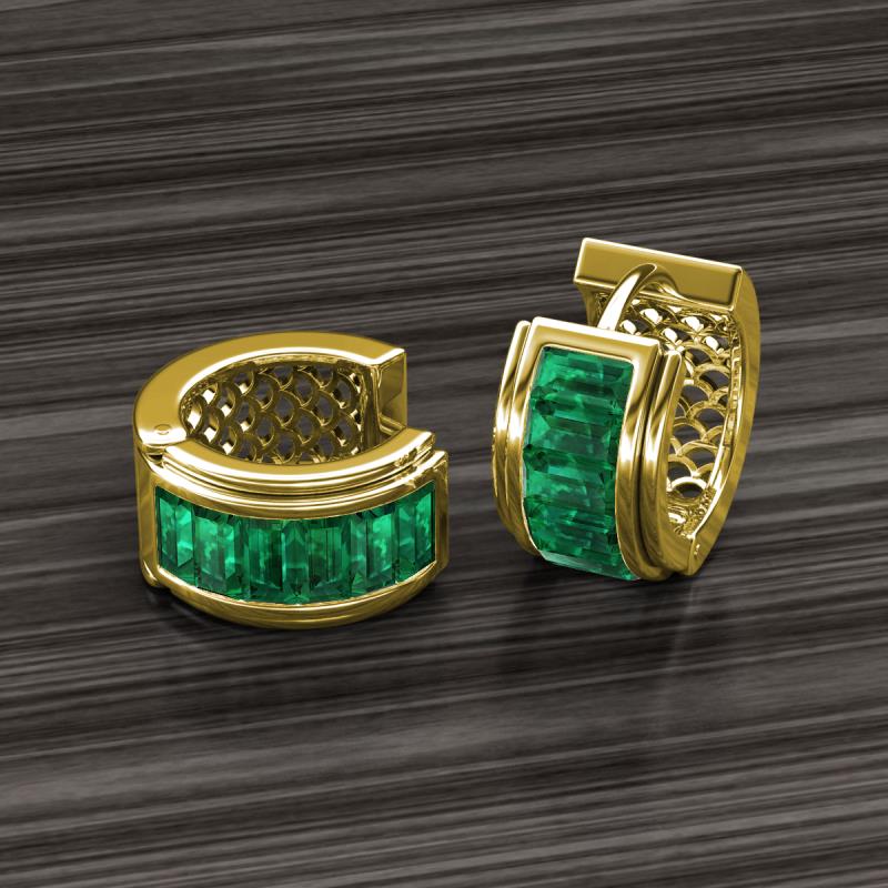 1.22 ctw Emerald Baguette Shape (3.75 x 2.00 mm) Womens Channel Set Hoop Earrings 18K Yellow Gold More Details ...