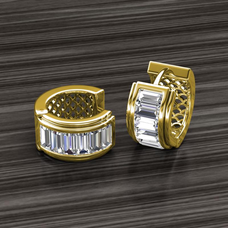 These 14k Yellow Gold versatile hoop earrings are ready to add a bright finishing accent to your look. These ready-for-the-party earrings are adorned with fourteen glittering Baguette Shape Diamond held in Channel setting secured with hidden snap posts, elevate the refined allure of these hoops.