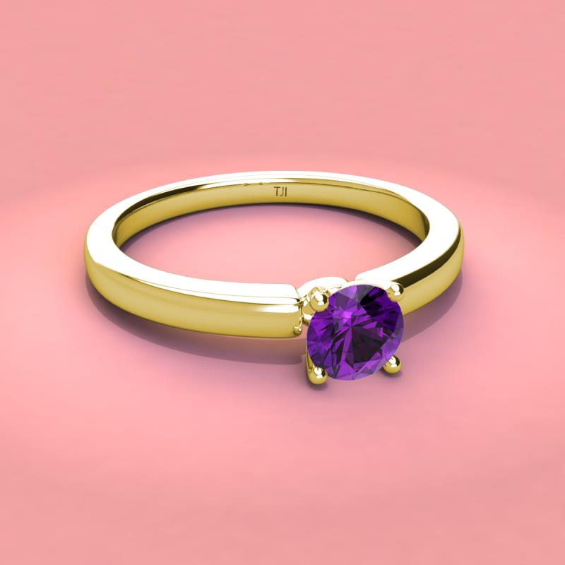 Round Amethyst 0.87 ct Womens Solitaire Engagement Ring 18K Yellow Gold More Details ...