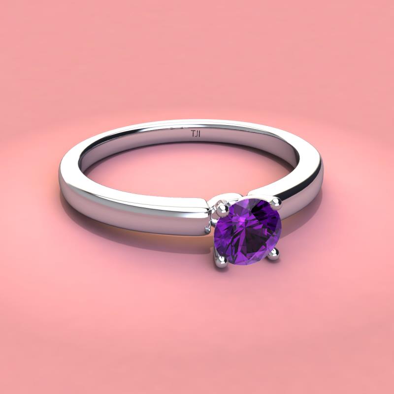 Beauty and simplicity stands out with a Amethyst in an elevated four prong setting ensuring that this 0.87 ct Solitaire Ring sparkles from every possible angle.