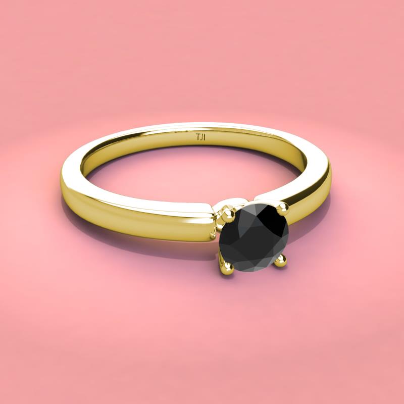 Round Black Diamond 1.00 ct Womens Solitaire Engagement Ring 18K Yellow Gold More Details ...
