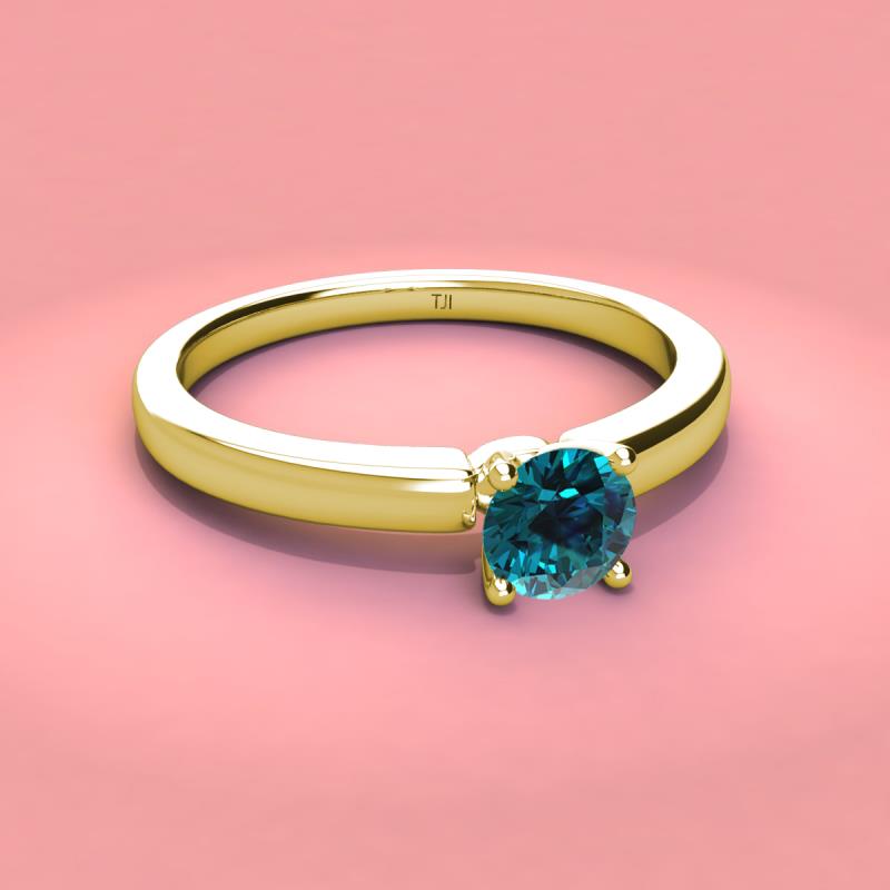 Beauty and simplicity stands out with a Blue Diamond in an elevated four prong setting ensuring that this 0.90 ct Solitaire Ring sparkles from every possible angle.