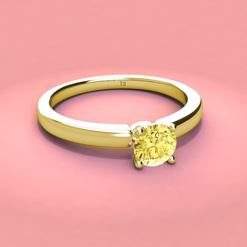 Beauty and simplicity stands out with a Lab Created Yellow Sapphire in an elevated four prong setting ensuring that this 0.95 ct Solitaire Ring sparkles from every possible angle.