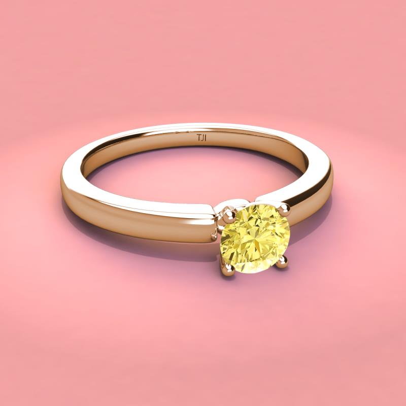 Beauty and simplicity stands out with a Lab Created Yellow Sapphire in an elevated four prong setting ensuring that this 0.95 ct Solitaire Ring sparkles from every possible angle.