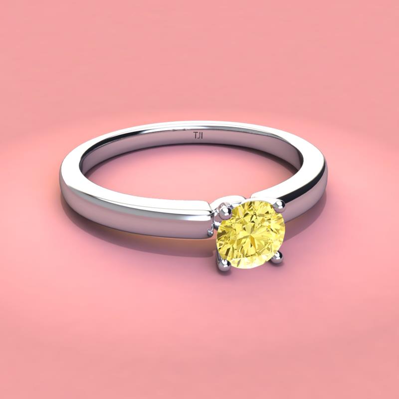 Beauty and simplicity stands out with a Lab Created Yellow Sapphire in an elevated four prong setting ensuring that this 0.95 ct Solitaire Ring sparkles from every possible angle.