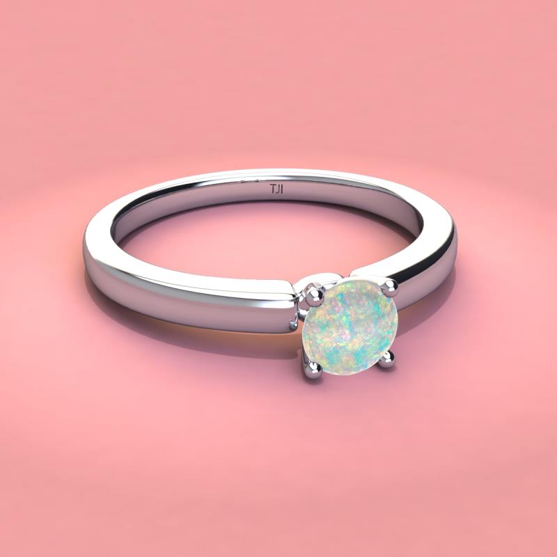 Beauty and simplicity stands out with a Opal in an elevated four prong setting ensuring that this 0.60 ct Solitaire Ring sparkles from every possible angle.