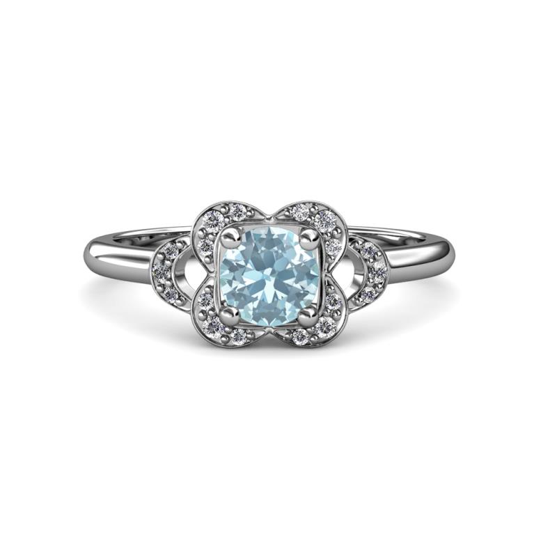 7/8 ctw Round Aquamarine and Diamond Floral Womens Engagement Ring 14K White Gold More Details ...