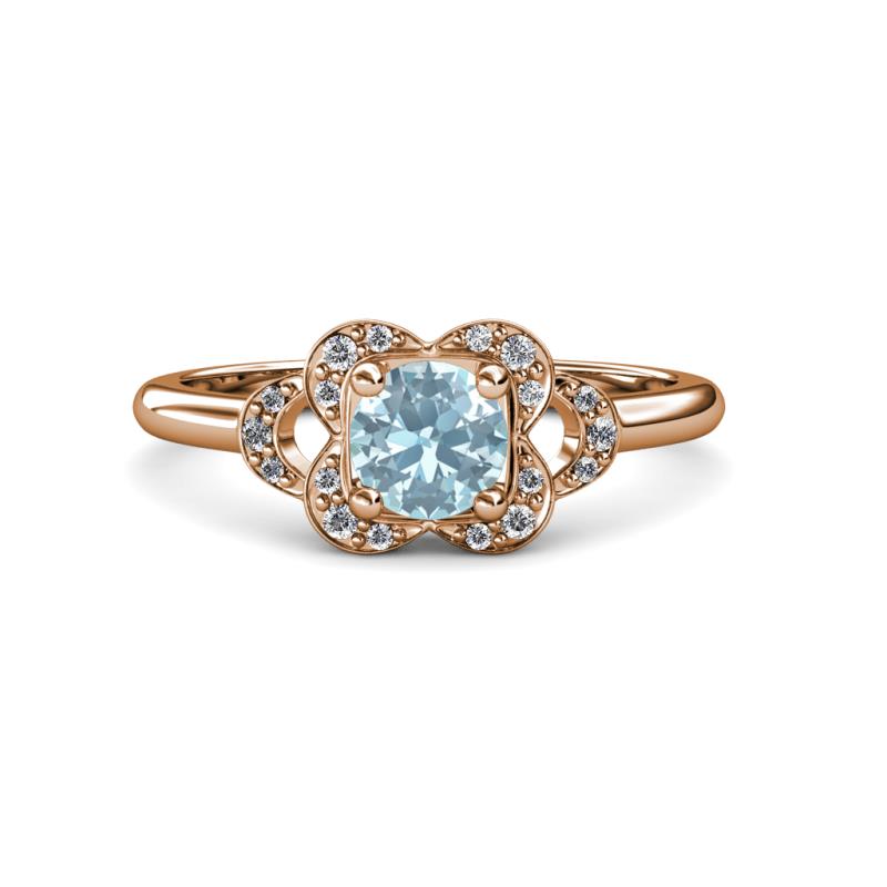 7/8 ctw Round Aquamarine and Diamond Floral Womens Engagement Ring 18K Rose Gold More Details ...
