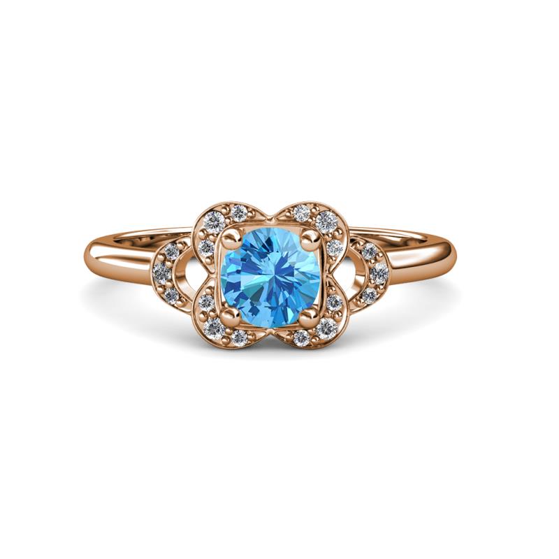 1 ctw Round Blue Topaz and Diamond Floral Womens Engagement Ring 14K Rose Gold More Details ...
