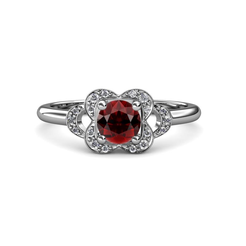 1 ctw Round Red Garnet and Diamond Floral Womens Engagement Ring 18K White Gold More Details ...