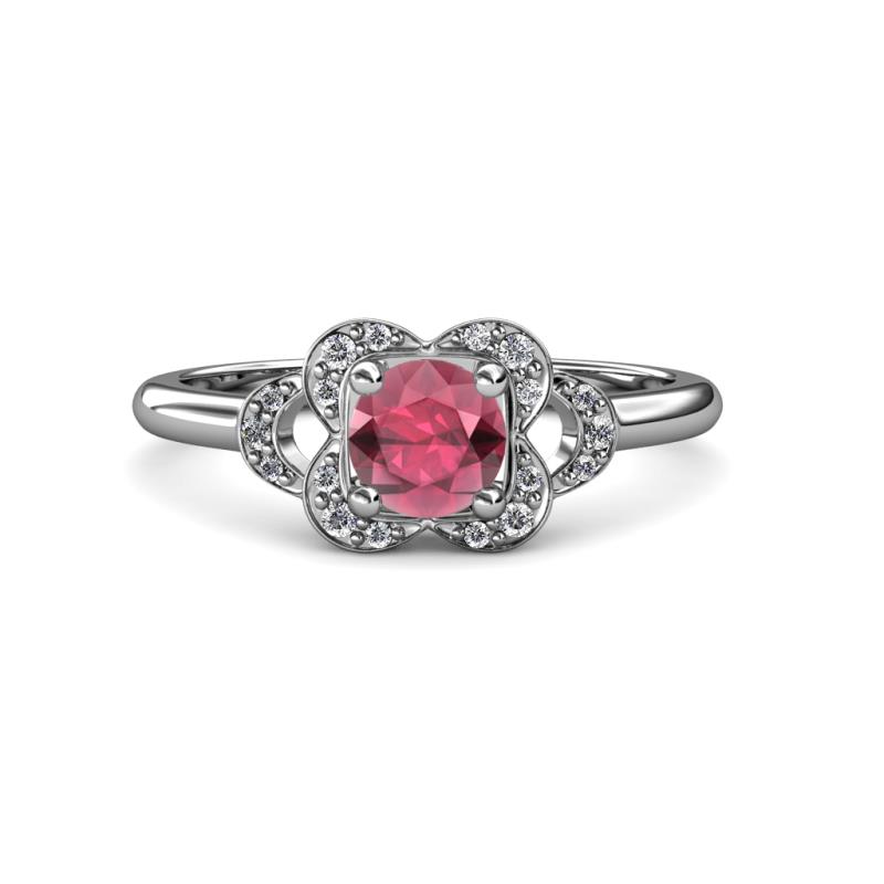 1 ctw Round Rhodolite Garnet and Diamond Floral Womens Engagement Ring 14K White Gold More Details ...