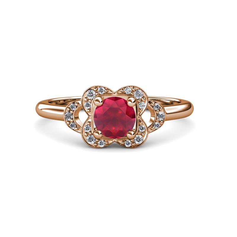 1 1/8 ctw Round Ruby and Diamond Floral Womens Engagement Ring 14K Rose Gold More Details ...