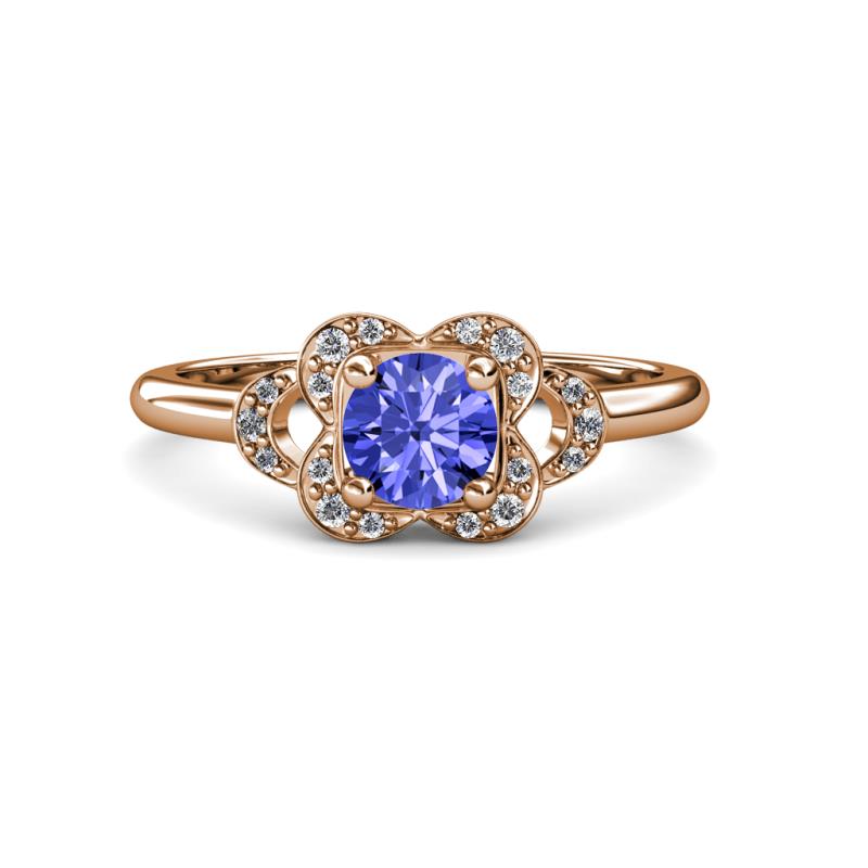 1 ctw Round Tanzanite and Diamond Floral Womens Engagement Ring 14K Rose Gold More Details ...