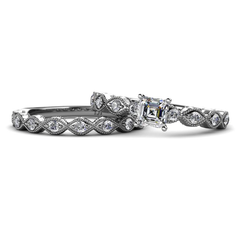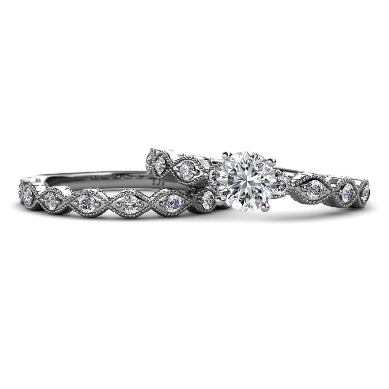 This is a beautiful 0.15 ct tw Swirl Bridal Set With April Birthstone Natural White Round Diamond, representing Love.