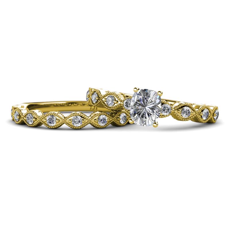Diamond Four Prong Swirl Semi Mount Engagement Ring Setting & Matching Diamond Band 0.15 ctw 14K Yellow Gold More Details ...