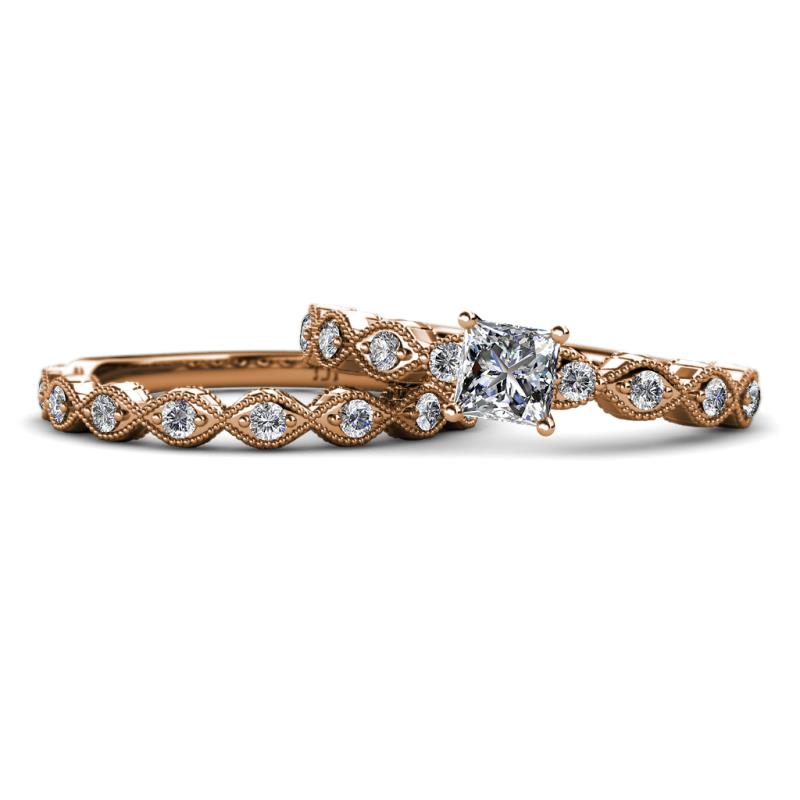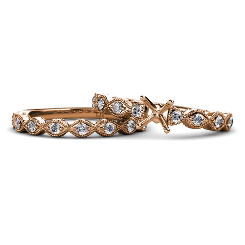 Diamond Four Prong Swirl Semi Mount Engagement Ring Setting & Matching Diamond Band 0.15 ctw 14K Rose Gold More Details ...
