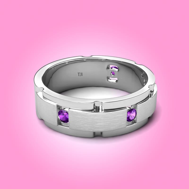 Wish To Look Stunning On Your Big Day, this Wedding Band of 0.16 ctw Round Amethyst Satin Finished Center and Polished Edges with Grooved Lines, will do the magic for you.