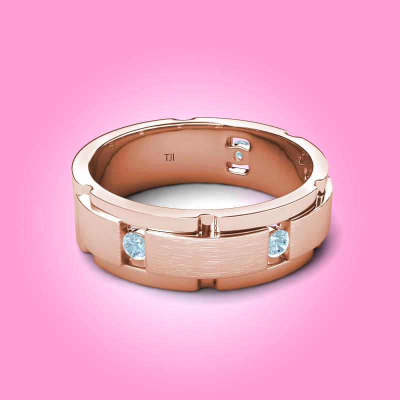 Round Aquamarine 0.16 ctw Satin Finished Center and Polished Edges with Grooved Lines Men Wedding Band 10K Rose Gold More Details ...