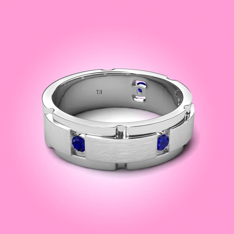 Wish To Look Stunning On Your Big Day, this Wedding Band of 0.26 ctw Round Blue Sapphire Satin Finished Center and Polished Edges with Grooved Lines, will do the magic for you.